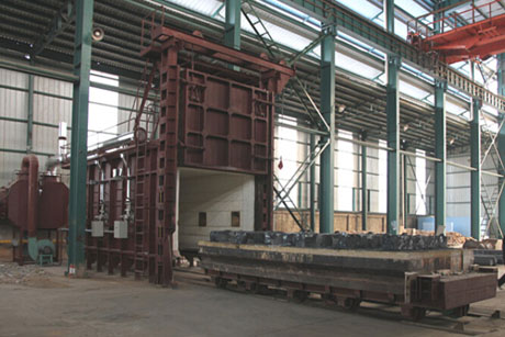 台车式电阻炉主要用于大型工件、高铬、高锰钢铸件淬火、退火、回火、时效等热处理,以及灰口铸铁、球墨铸铁、轧辊、钢 球、破碎机锤头、耐磨衬板淬火、正火、回火..